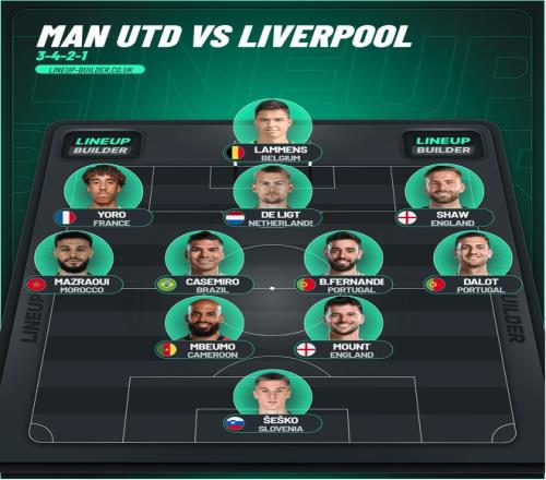 左右两侧可能是曼联对阵利物浦时唯一存在变数的位置。阿马德·迪亚洛首发出战「黑猫」,担任右边翼卫,但阿莫林在强强对话时通常不会安排他担任这个位置,毕竟姆贝莫和阿马德的右路防守,恐怕是不足以应付强敌进攻的。