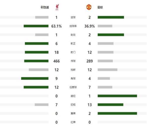 继续猛攻的利物浦,在第78分钟扳平比分,替补登场的小基耶萨左路横敲门前,此前3次中框的加克波,轻松推射建功,将比分改写为了1平,但利物浦并没有开心太久,第84分钟马奎尔接到B费传中后,打入准绝杀帮助曼联2-1客场击败死敌。