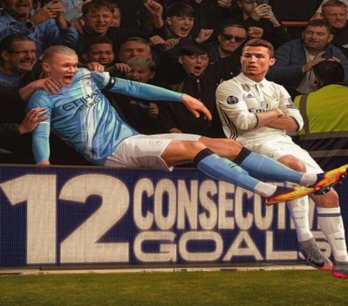 随着主裁判一声哨响,曼城就反客为主在场上压制住了比利亚雷亚尔,第1分钟他们就在前场完成抢断,创造出了一次极具威胁的反击机会,可惜多库的打门绵软无力,被黄潜门将奋勇扑出,不过在第17分钟,蓝月军团还是率先打破了场上的平衡,刘易斯右路下底传中,哈兰德包抄建功,将比分改写为了1-0,各项赛事连续12场破门,让挪威魔人追平了C罗保持的足坛神迹。