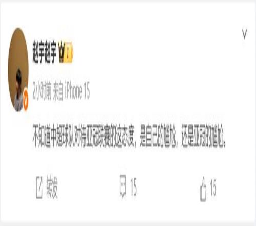 值得一提的是,在稍早结束的一场比赛中,成都蓉城在主场0-2不敌马来西亚球队柔佛新山,而在上海海港也同样输球后,记者赵宇也是发文表示,不知道中超球队对待亚冠联赛的这态度,是自己的尴尬,还是亚冠的尴尬。